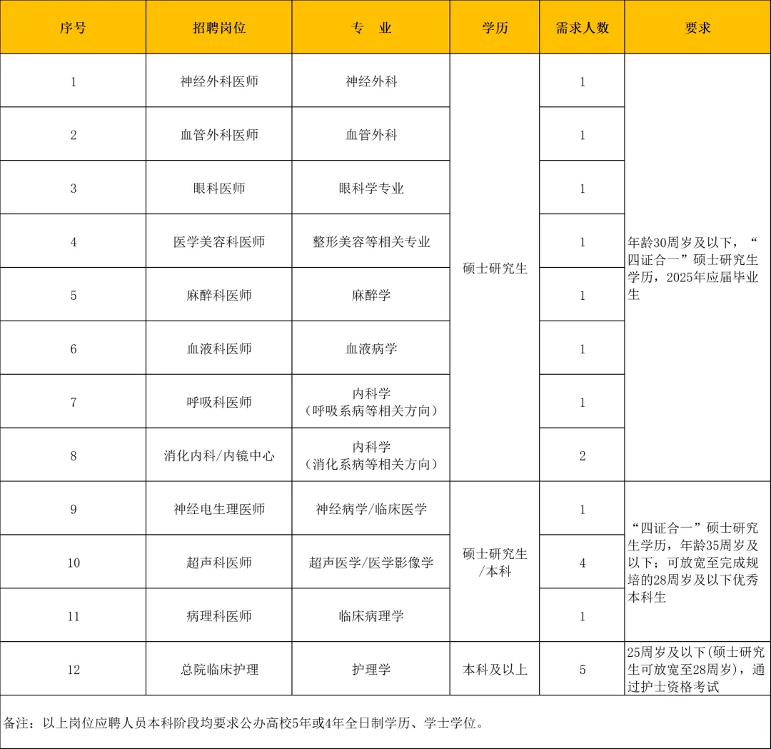应聘岗位要求的年龄以身份证为准(如“25周岁以下”为“1999年8月1日以后出生”,其他涉及年龄计算的依此类推)。招聘岗位及要求详见《附表1.2025年专业技术人员岗位需求表》。