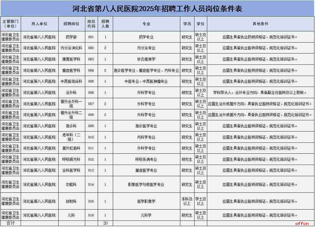 2025年河北省第八人民医院招聘工作人员20名公告-云顶集团官方网站入口