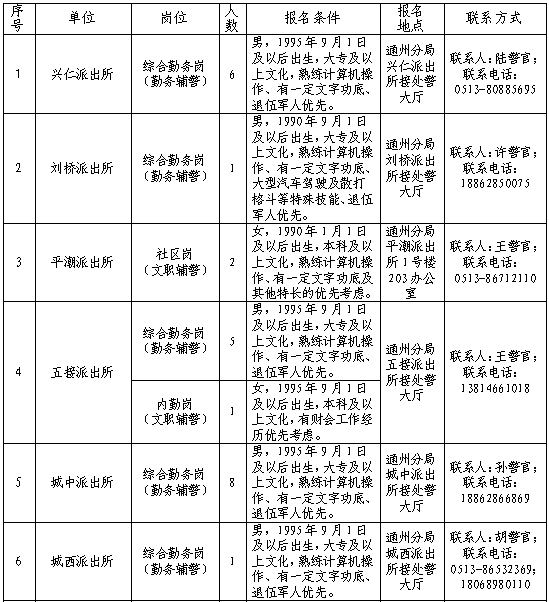 为提升公安机关维护社会稳定、服务经济发展的水平,进一步提高公安机关应急处突和快速反应能力,南通市公安局通州分局现面向社会公开招聘29名辅警。现将有关事项公告如下: