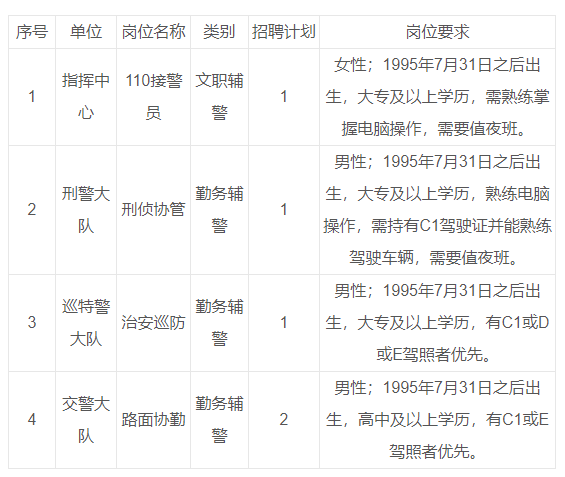 2. 具备良好的政治素质和道德品行,责任心强,自愿从事警务辅助工作;