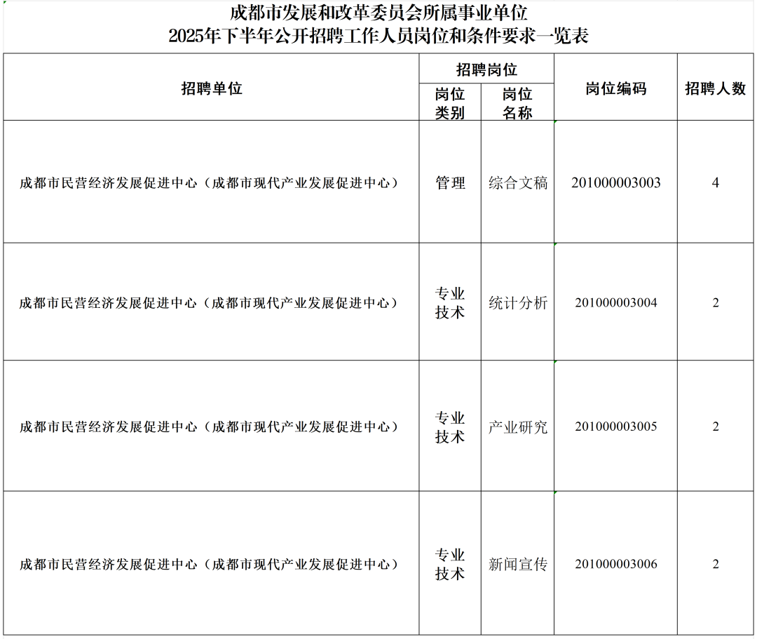 - 成都市发展和改革委员会所属事业单位招聘10人公告 2025-10-13