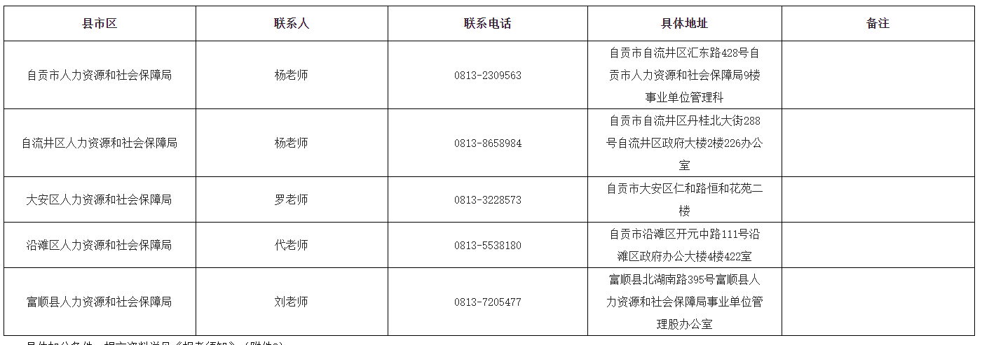 自贡市人力资源和社会保障局:0813-2309563